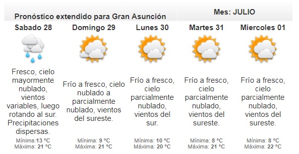La Dirección de Meteorología pronostica que esta jornada se presentará fresca, con el cielo mayormente nublado. Los vientos serán variables.