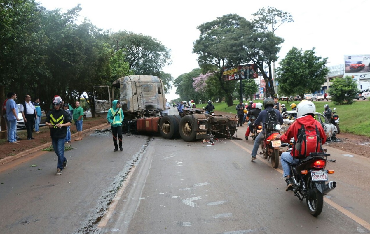 Un camión fue incinerado en plena Ruta Internacional. (Foto Gentileza)