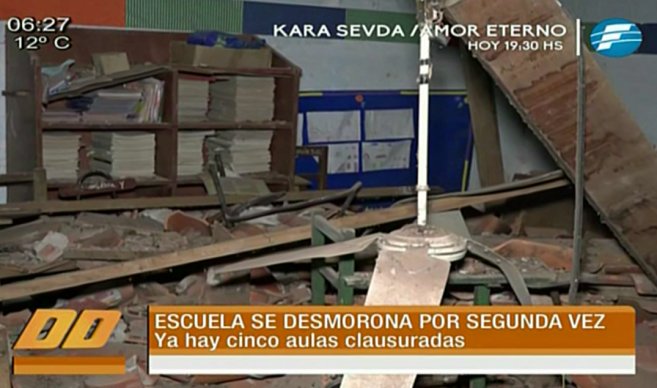 Según testigos, no es la primera vez que se produce la caída del techo de la mencionada aula, el mismo hecho ya ocurrió el año pasado, motivo por el cual fue clausurado por parte del Ministerio de Educación y Ciencias.