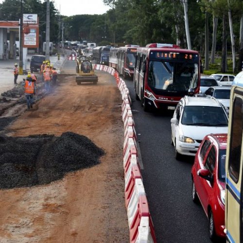 Las obras de desagüe pluvial y también los trabajos realizados para el Metrobús generan congestión vehicular en las principales arterias, principalmente Mcal. Estigarribia y Mcal. López.