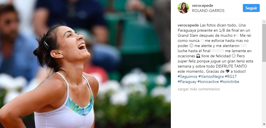 En otro posteo, Verónica indicó “Las fotos dicen todo. Una Paraguaya presente en 1/8 de final en un Grand Slam despues de mucho. Me reí como nunca, me esforcé hasta mas no poder, me alenté y me alentaron. Luché hasta el final, me lamente en ocasiones, lloré de felicidad, pero super feliz porque jugué un gran tenis esta semana y sobre todo DISFRUTE TANTO este momento.. Gracias de 💖 a todos!!”, destacó.