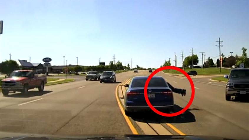 La cámara de un vehículo patrullero capturó el momento preciso en el que Tompkins abandonaba su vehículo para colarse por la ventanilla del auto desorientado. Gran sorpresa se llevó al encontrar a su conductor teniendo un ataque de epilepsia.