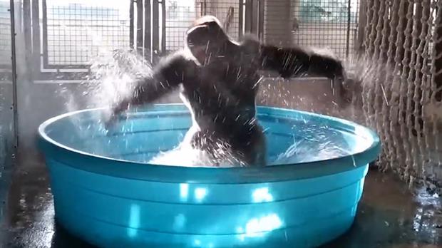 Zola, el gorila, se ha convertido en un éxito viral por sus movimientos giratorios en una bañera en el zoológico de Dallas.