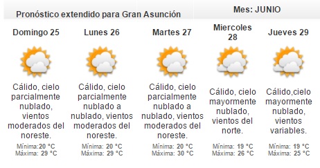 Para el domingo la temperatura se mantendrá, con una mínima de 19º y la máxima de 29º, con vientos lleves a moderados del Norte y escasa formación de nubes.