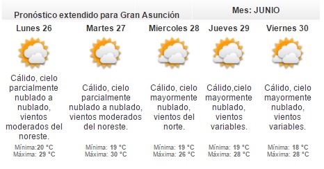Según la Dirección de Meteorología, se tendrá una jornada cálida, con cielo parcialmente nublado y vientos moderados del noreste. Se espera una máxima de 29 grados.