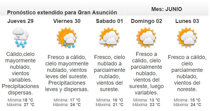La máxima estimada es de 29 grados para Gran Asunción.