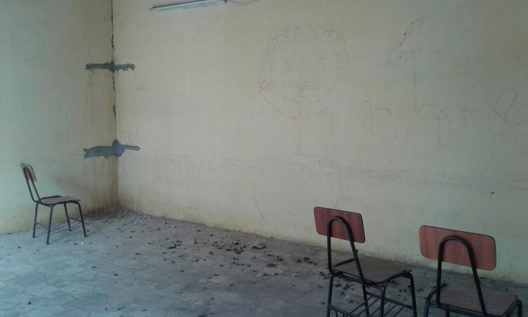 Una de las aulas del colegio que fue tomado. Foto: Última Hora.