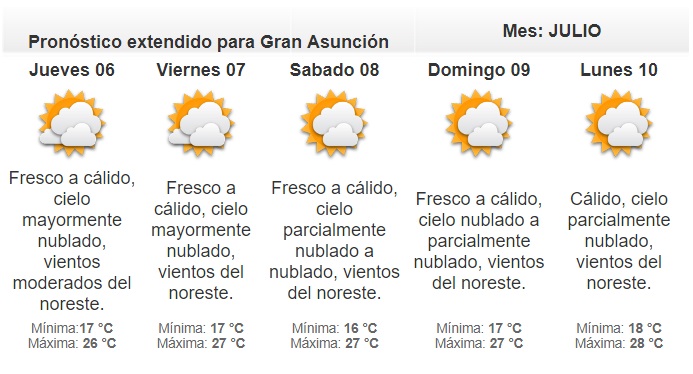 El clima se presentará con la mañana fresca y el resto de la jornada cálida. El cielo mayormente nublado.