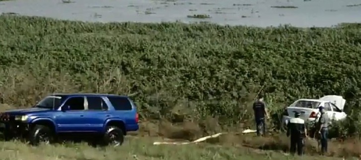Imagen del automóvil en el río. Foto: Telefuturo.