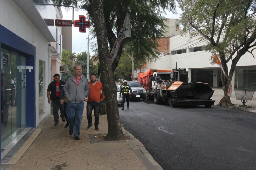 Ferreiro en la mañana de este domingo observando trabajos realizados en el centro de la capital. Foto: Twitter Municipalidad de Asunción.