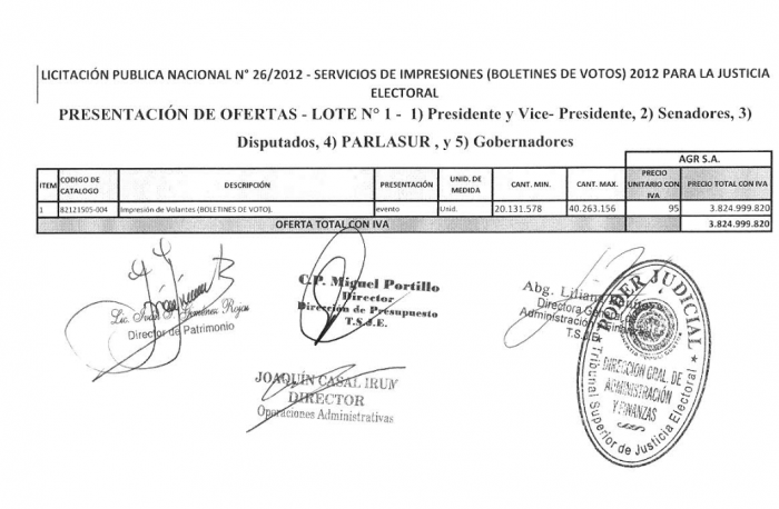 Según documentos que constan en la web de la Dirección Nacional de Contrataciones Pública (DNCP), el máximo tribunal electoral pagará un total de G. 9.946 millones para imprimir poco más de 36 millones de papeletas.