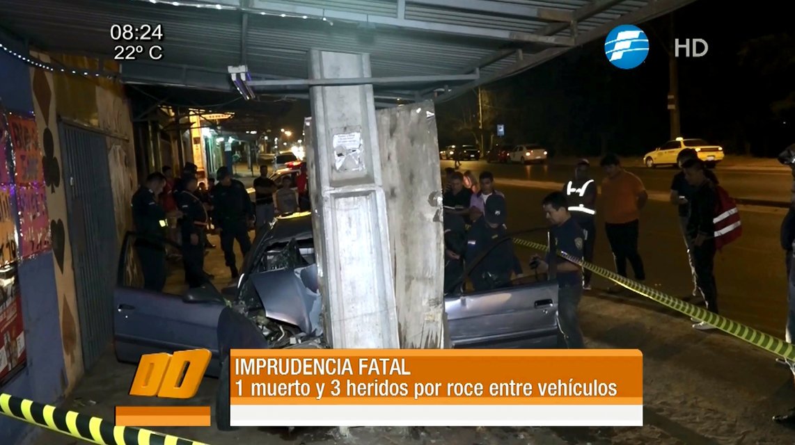 El accidente se produjo en la madrugada de este lunes, el vehículo fue rozado por otro automóvil, lo que causo que el conductor perdiera el control y terminara impactando contra una columna, según el relato de los testigos.