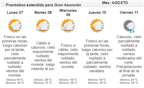 Desde la Dirección de Meteorología anuncian un domingo cálido a caluroso, con vientos del noroeste.