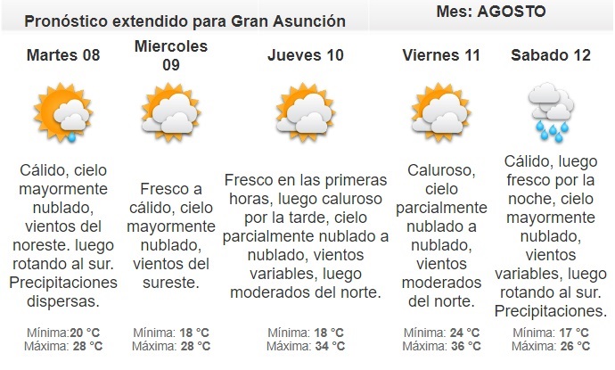 Desde la Dirección de Meteorología anuncian un inicio de semana caluroso. No se pronostican lluvias.