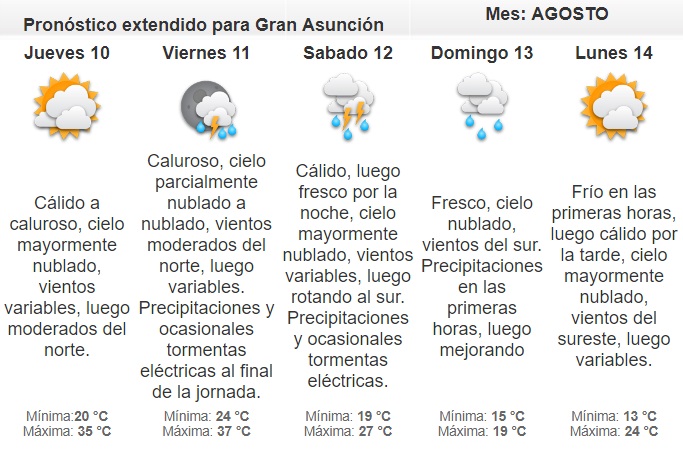 Desde la Dirección de Meteorología anuncian clima fresco a cálido, con el cielo mayormente nublado. Los vientos rotaran del sector sureste.