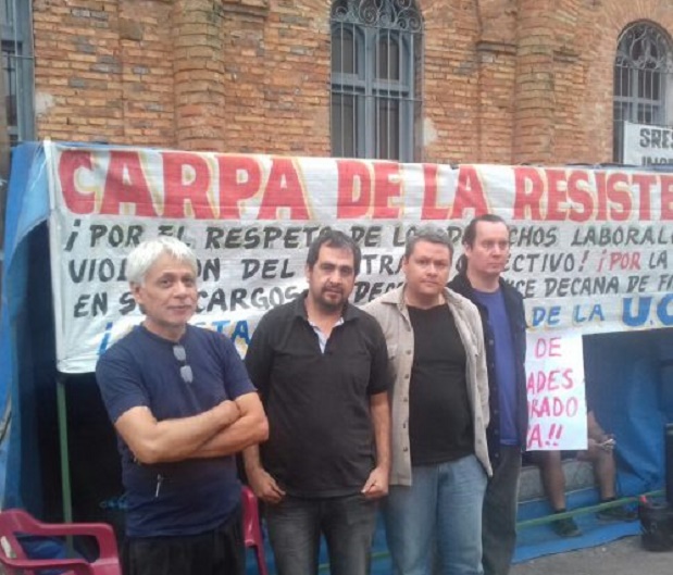 Los jóvenes que protestan en la sede, y que no permiten que se desarrollen clases, piden la restitución de José Antonio Galeano en el cargo de decano de la institución, ya que no están de acuerdo con su separación.