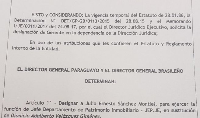 Velázquez ingresó en la Entidad Binacional hace más de 10 años durante la administración de Duarte Frutos.