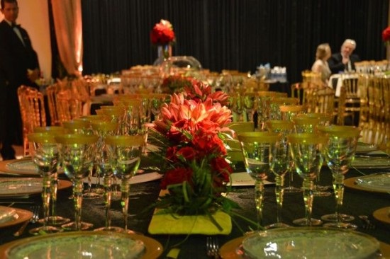 La recepción fue preparada para unos pocos invitados, donde los más allegados a la pareja disfrutaron del salón decorado por Armando Teme. El profesional utilizó rosas rojas y follaje para crear un ambiente inspirado en un romántico jardín, añadiendo los tonos negro y dorado combinados con arañas de cristales.