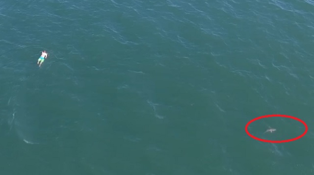 Un dron que grababa captó incluso que el hombre estuvo nadando junto a un tiburón sin darse cuenta.