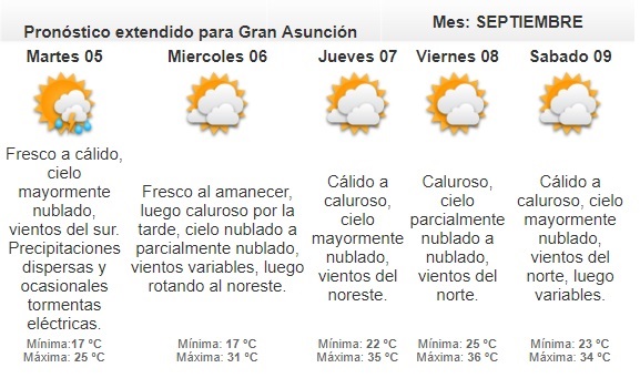 Las probabilidades de precipitaciones al final del día serían en Boquerón, Ñeembucú y Misiones.