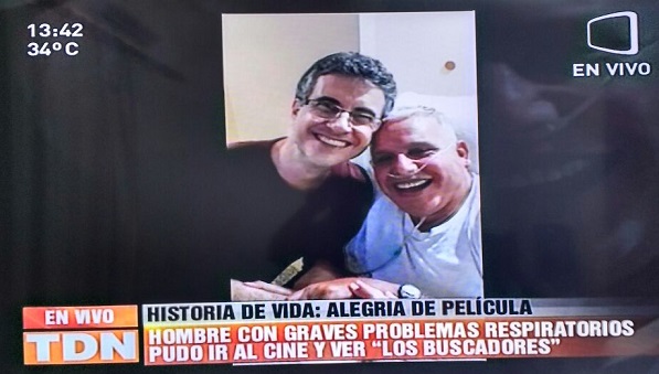 Emigdio Osvaldo Barrios, de 67 años, con fibrosis pulmonar idiopática, fue al cine, lo hizo con todos sus accesorios de salud para ver la película Los Buscadores.