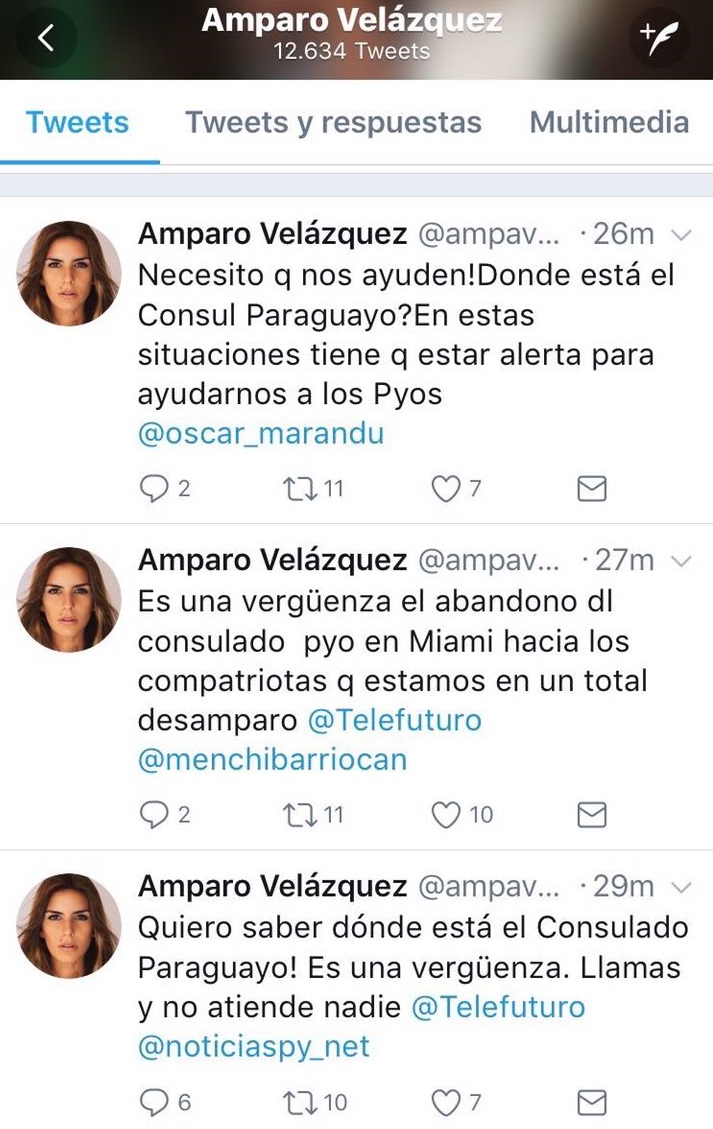 A las palabras de Amparo se sumó su padre, el exfiscal Roberto Velázquez Vezzetti que dijo: “Desde que tiene uso de razón esta chica está por Miami y por cualquier parte del mundo porque la vida me permitió poder darle eso. Y a mí la vida me permitió viajar a un montón de lugares. Ella puede estar en Miami ahora porque pudo, porque quiere y porque se le canta y porque a mí se me canta, no es tan difícil de entender”.