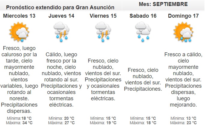 Desde Meteorología pronostican un día fresco a cálido, con alta probabilidad de lluvias dispersas para el centro y sur de la región oriental.