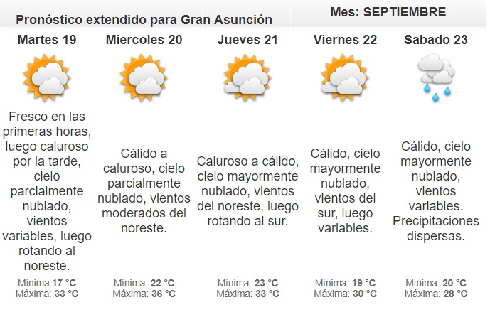 El cielo estará parcialmente nublado con vientos del sector sureste.