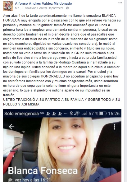 Ayer alas 4 de la tarde aproximadamente me llamo la senadora BLANCA FONSECA muy enojada por el pasacalles con lo que…
