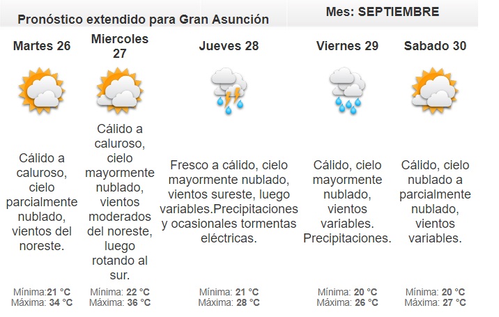 Hay probabilidad de precipitaciones dispersas y ocasionales tormentas eléctricas.