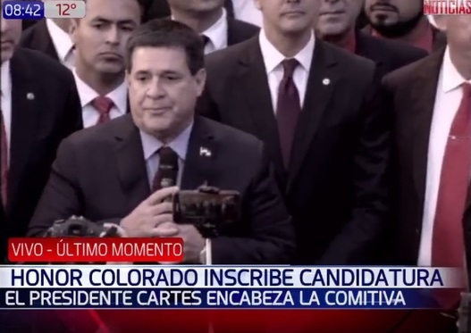 En el último día hábil para inscirbirse, el Presidente de la República, Horacio Cartes y el precandidato Santiago Peña, llegaron a la ANR, donde inscribieron la candidatura.