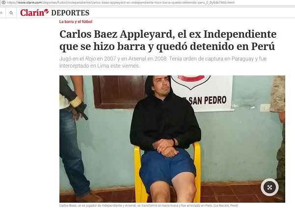 “Carlos Baez Appleyard, el ex Independiente que se hizo barra y quedó detenido en Perú”, señalaba el título de la nota publicada este viernes.