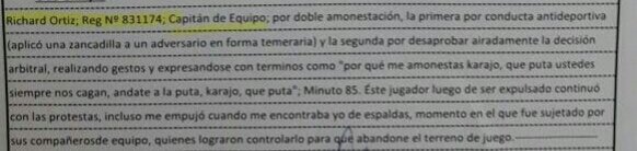 Llamativamente, en esto caso fue filtrado el informe del árbitro, el cual señala paso por paso lo que pasó con el futbolista.