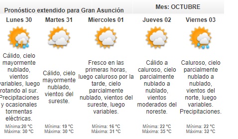 La máxima estimada será de 30 grados en Asunción.