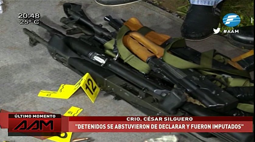 Lo mencionado se dio debido a que en la vivienda allanada se hallaron armas, municiones, y 900 gramos de marihuana, informó a Algo Anda Mal, de Telefuturo, el comisario César Silguero, jefe de criminalística de la Policía Nacional.