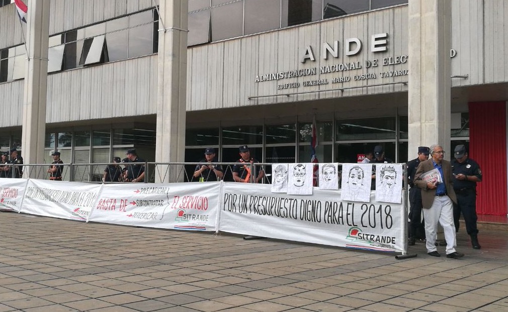 Funcionarios de la ANDE, que prestan servicios en distintas oficinas de todo el país, se manifiestan en la mañana de este lunes, exigiendo aumento salarial, y cuestionan la precariedad con la que trabajan.