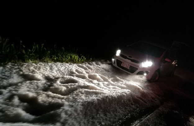 Así también otra de las zonas afectadas fue Itapúa, donde prácticamente luego de la granizada no se veía el camino.