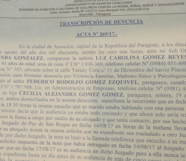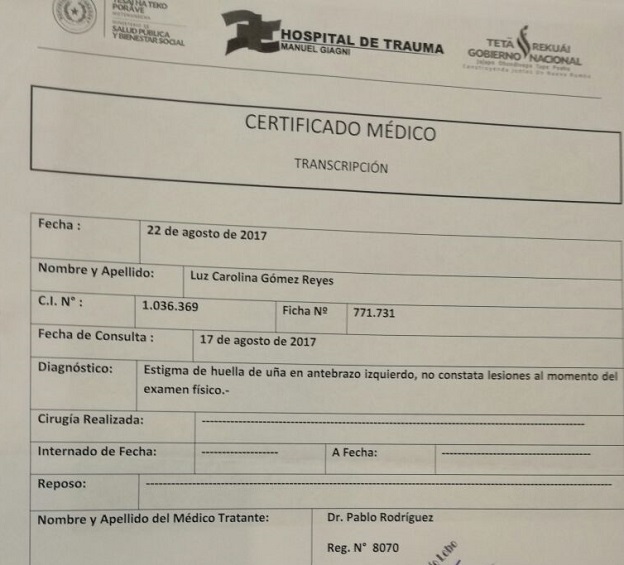 Gómez necesita las imágenes donde ella se acerca a la Comisaría, para comprobar que llegó hasta el ente policial a pedir auxilio el día del incidente. Además para presentar frente al Ministerio Público y el Juzgado de Paz de modo a demostrar su versión.
