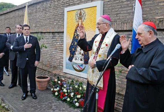 Horacio Cartes, resaltó este jueves el rol de la Iglesia Católica en nuestro país, lo manifestó durante la colocación del mosaico de Nuestra Señora de los Milagros de Caacupé, en los jardines del Vaticano.