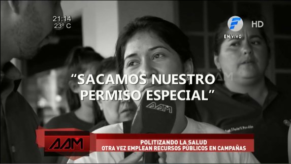 El equipo periodístico del programa Algo Anda Mal (AAM) constató la presencia de los funcionarios de salud en el acto político de Santigo Peña en horario laboral. El propio ministro reconoció que el personal sanitario fue llevado a la jornada.