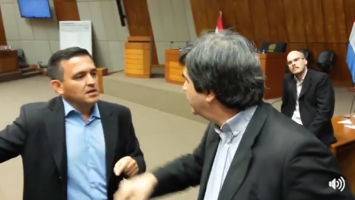 De acuerdo a lo que se puede ver y escuchar, Petta reprocha a Filizzola el hecho de no apoyar la suspensión del senador Oscar González Daher.