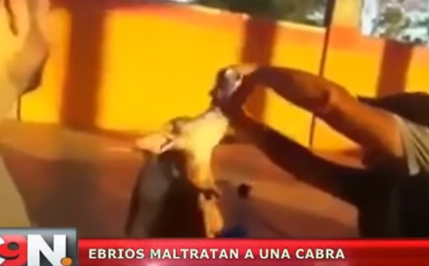 El video fue difundido por C9N y muestra a una cabra siendo objeto de maltratos por parte de varios hombres, mientras que uno de ellos graba toda la escena.