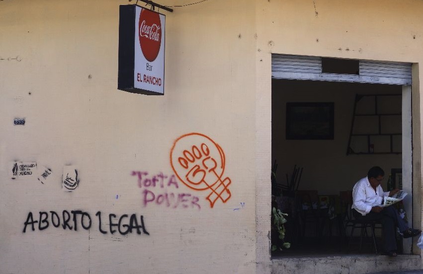 Los mensajes que están pintados por la pared son “Aborto legal”, “Iglesia miente”, “Estado feminicida”, entre otros.