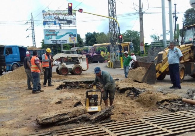 El intendente de Fernando de la Mora, Alcides Riveros, indicó que pidieron a la Essap tape el cráter que se formó sobre la avenida Santa Teresa.