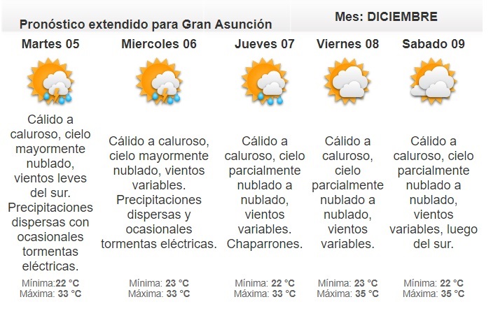 Las precipitaciones afectarán al norte de la región Oriental y el Chaco, como también en el centro del territorio nacional.