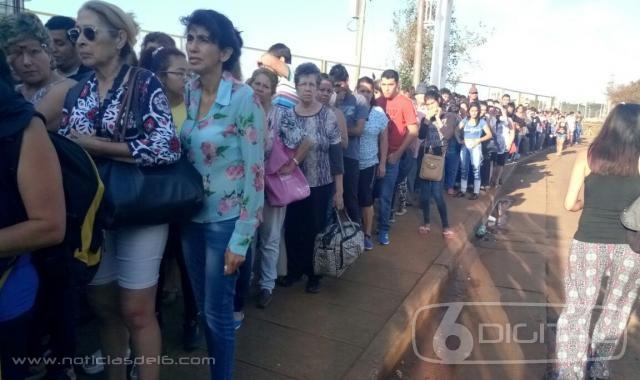 Los argentinos que esperaban pasar al lado paraguayo sufrieron por el intenso calor. El hecho se da a causa del cobro de medio aguinaldo a estatales de la provincia argentina.