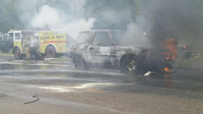 Según reportes preliminares, el rodado de la marca Toyota tipo Rav4 habría sufrido algún desperfecto mecánico o eléctrico lo que podría haber iniciado el fuego.