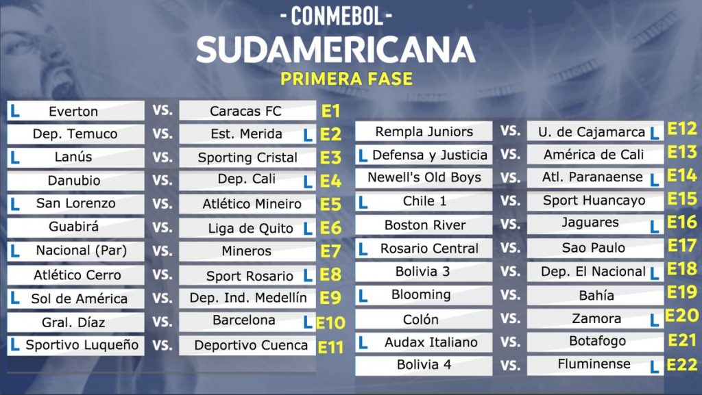 En donde, Nacional, de local, arrancará el certamen ante Mineros de Venezuela, mientras que Sol de América chocará ante el Independiente de Medellín de Colombia.