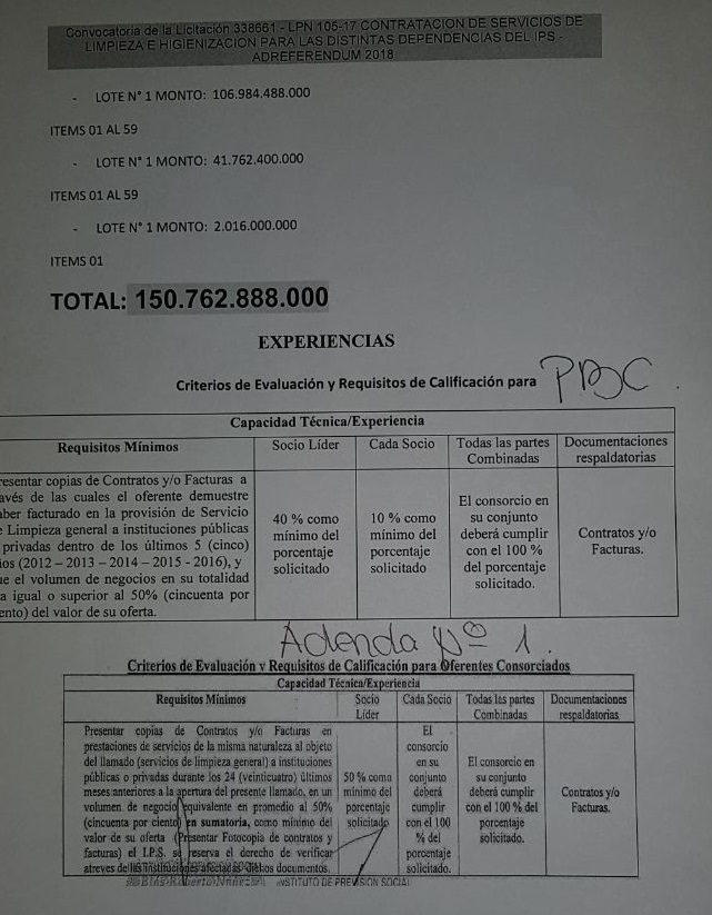 El IPS tiene previsto abrir las ofertas de la licitación el martes 2 de enero. El contrato, que será concedido en tres lotes, es por la friolera de G. 150.762.888.000, es decir más de USD 27 millones, al cambio actual.