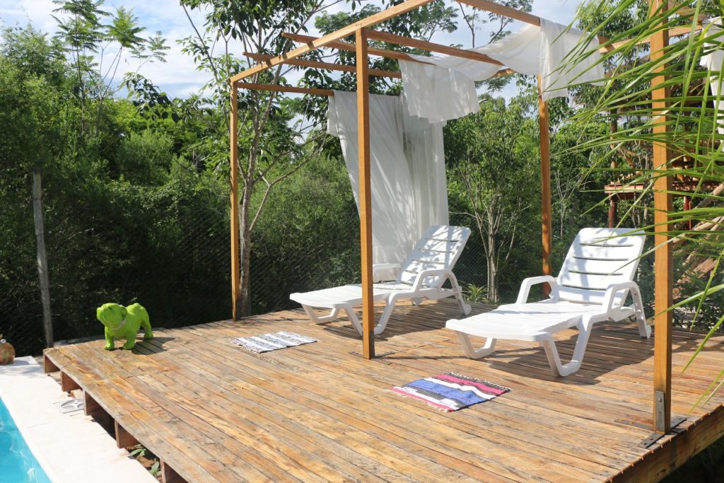 Conjuga un espacio natural combinado con el confort necesario para el descanso y el esparcimiento. La misma cuenta con 2 cabañas privadas con baño, aire acondicionado y frigobar, además de otra habitación que está junto a una cascada de agua y un balcón que invita al disfrute.